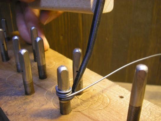 工房での張弦用に適しています。(たくさん弦を張る時に) クランクがチューニングピンをかわし、先端はピンの形状にピッタリ。そしてコイルを包み込むような形状に作りました。